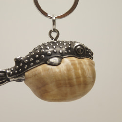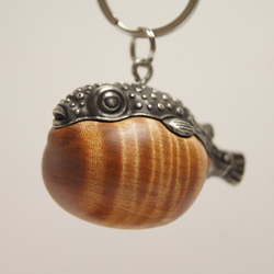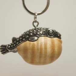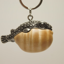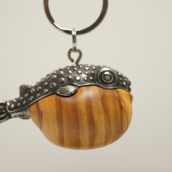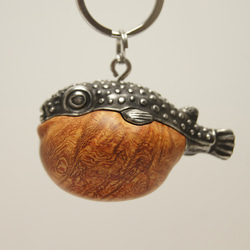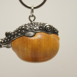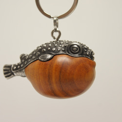 フグ パロサント(木材)ピューター(金属)キーホルダー、ペンダント、バッグチャーム、置物