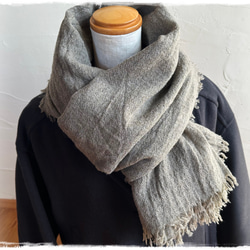 ◎大判サイズでお作りしていますので用途はたくさん。さっと肩から羽織ったり膝掛けとしてもいいですね…。縫製処理をせず、ぐるりと一周切りっぱなしのデザインを採用しました。フリンジは控えめにナチュラルに仕上げています。