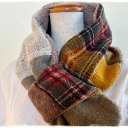 * ウールガーゼ 大判ストールマフラー(ブロックチェック) *