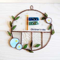 お花やだるまさんは、窯でじっくり丸1日焼いて作ったものを、ステンドグラスで組み立てています。