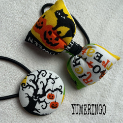 【送料無料】お揃いヘアゴム(黄色/花柄)小リボン&くるみボタンセット