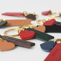 クリスマス早割中♪イタリア革の名入れが嬉しいニコイチハートのキーホルダー 真鍮金具