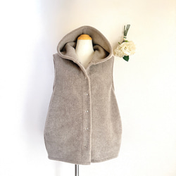 肌触りなめらかなフード付きベストです。