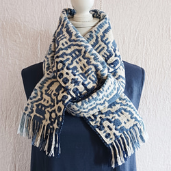 ・アートヤーンメリノのブークレ:メリノウールを紡いだものをラムウール糸に緩く巻き付け、さらにラムウール糸をかけて凸凹の表情にしました。