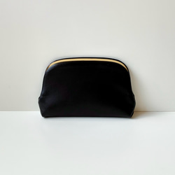 天溝がま口という変わった口金を使っています。留め金が外側ではなく内側にある、「押し口」というタイプです。外側から、中の留め金を押して開ける構造です。