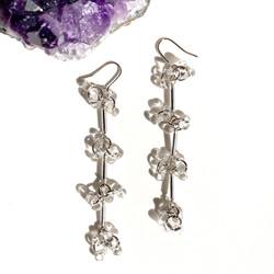 小さな天然のアメジスト原石を3粒ずつあしらった揺れるチェーンピアスです。