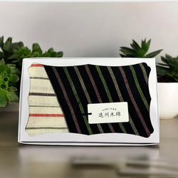 ①素材の風合いを活かした完全な手縫い製品のため、基本的なパターンや柄は同じでも、一点ごとの柄の位置やカラーパターンが変わります。また、角度により素材の色合いが異なって見える作品もございます。