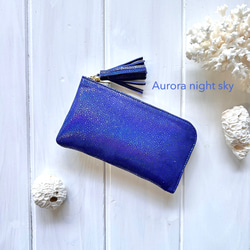 キラキラと虹色に光る☆オーロラ加工をした牛革です。しっかり厚みがありコロン!としています。オーロラは加工上、模様の切り替え線がある場合がありますのでご了承くださいませ。