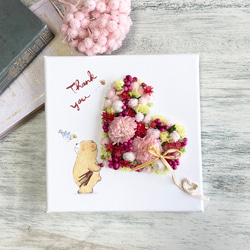 似顔絵にプリザーブドフラワーを一つ一つ専用グルーで貼ってお作りしております。