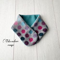 カラフル水色ドット&フリースのネックウォーマーマフラーです。