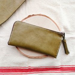 ファスナー以外に金具を使わないので、革の質感を活かした作品になります。