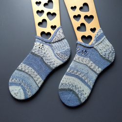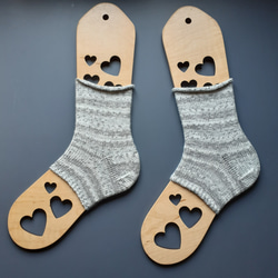スパイラル模様の手編みのレッグウォーマーです。