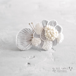 linen chouchobana刺繍ブローチ(オフ)【受注制作】