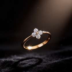 A 優雅な蝶モチーフ: リングの片側に小さな輝く蝶が配置されており、動きと生命力を象徴するようなデザイン。
