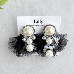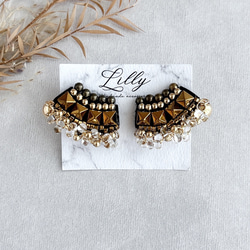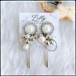 大ぶりピアス/ビジュー/ビーズ刺繍ピアス/シルバー/フープ/ピアス イヤリング