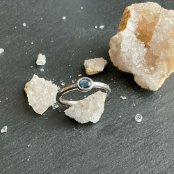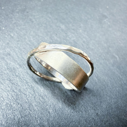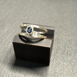 2本のシルバーリングでサファイアを挟み込んだデザインのリングになります。