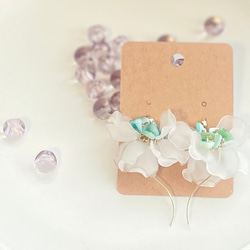 小さいブーケ 真っ白なお花たちとチェコガラスビーズの華やかイヤリング ピアス