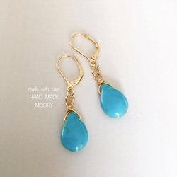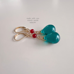 ティアドロップ型のちいさなグリーンのビーズをシンプルに一粒ピアスに仕上げました。