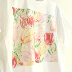 春から夏にかけて、そんな季節にぴったりの、大胆なアートが印象的なTシャツです。