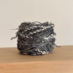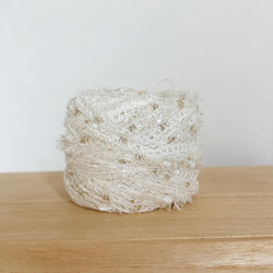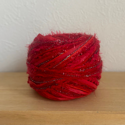 糸の種類によりますが、約10gで指編みシュシュ、モチーフリボンなど作れます!(画像3枚目)※こちらは作品例です。