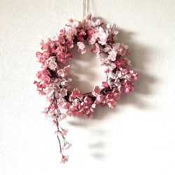 ピンクのお花と白色のお花、緑色の葉、このリースの感じが抜群に好みです♪とても癒されます♪目が喜んでいる感じになります(*^^*)