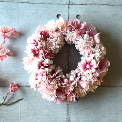 ピンク小花のナチュラルリース(アーティフィシャル 27cm)