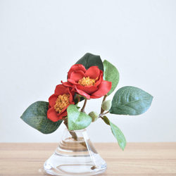 フェイクのりんごに、クオリティの高いアーティフィシャルフラワー(造花)でアレンジしたインテリアアイテムです。