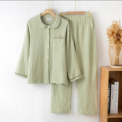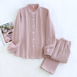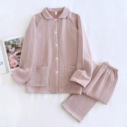 パジャマ 長袖レディース上下セット春秋ダブルガーゼ 春秋寝巻き