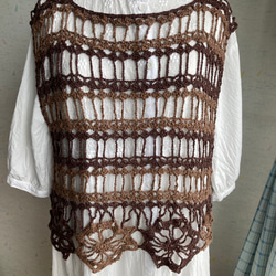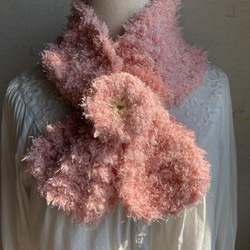 5色のお花モチーフの周りを水色の糸でまとめてみました。