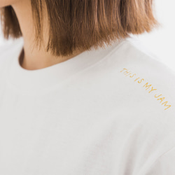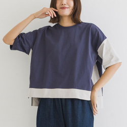 ・胸元のギャザーが、カジュアルな中にも女性らしい柔らかな印象をプラスします。