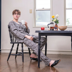 テーラードカラーのスタンダードなメンズパジャマです。