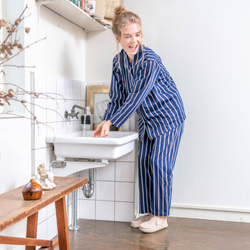 ワイドなストライプ柄で自分らしいホームスタイリングを楽しめる一着です。