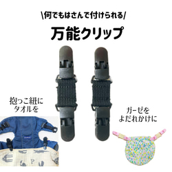 下から布を挟んでつけるクリップ(プラスチックのサスペンダークリップ)を採用。