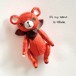 身長5cmのミニチュアテディベア/キャメル(和紙で作った小さなくまのお人形)&夢のドールハウスセット
