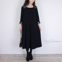 [予約販売] 揺れる袖フリルとボイル刺繍・ブラックワッシャーコットンワンピース