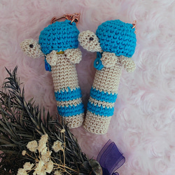 ふわふわの手触りが気持ちいい毛糸であみぐるみを縫い付けました。