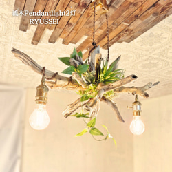個性的ながらちょっと短い流木を繋ぎ合わせて唯一無二ののペンダントライトに仕上げました。
