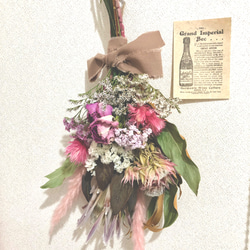 色とりどりの星型ドロップや夏色のお花の中には、猫のしっぽみたいな花材も加え、さくらんぼ、向日葵のイラストにはthank youメッセージが書いてあります!