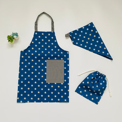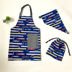 海の生き物くじら柄☆130〜140こどもエプロン、三角巾、巾着3点セット