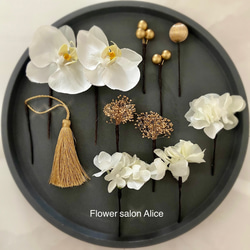 ・手作りのヘアアクセサリーは大変繊細です。お花が外れてしまう場合や配送中の破損の恐れもあります。ご理解の上、ご購入をお願い致します。(お花が外れてしまった場合はお手数ですが、お手持ちの接着剤などでお付け頂ければと思います。)