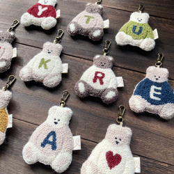 【選べるイニシャル&カラー】 テディベアコースター 1枚入り アルファベット もこもこ パンチニードル オーダーメイド