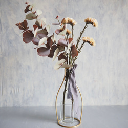秋にピッタリなお花を閉じ込めた、アーティフィシャルフラワーとゴールドフラワーベースがセットになったシリーズです。