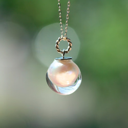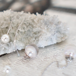 アコヤ真珠を樹脂で包み、流れ落ちそうな水をイメージしています。