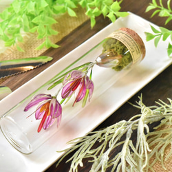 ディップアートで制作した草花をガラス管に詰め込み、植物標本化したものです。