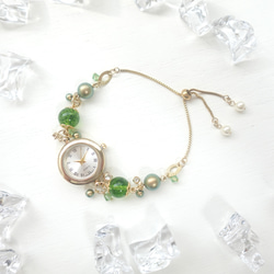 ブレスレットウォッチ 時計 腕時計 金属アレルギー対応 金属アレルギー対策 ティアドロップ ビーズ プレゼントラッピング 四つ葉のクローバー