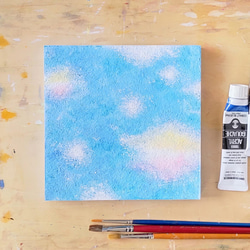 表面はコルクの素材感を残しながら重ねた絵の具で少しデコボコしています。サイドや上下にも着色しました。原画ならではの風合いをお楽しみください。