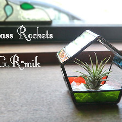 「ステンドグラスランプ|赤茶と緑のマーブルガラス・アンティーク調・ハンドメイド照明」
