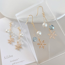 透け感ある菱形ガラスチャームとチェーンが揺れる存在感のある大ぶり長めデザイン