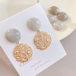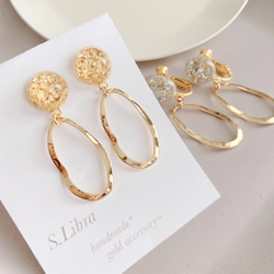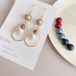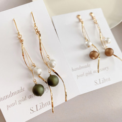ピアス・glassstone ガラスストーンゴールドオーバルチェーンピアス/カーキブラウンオリーブグリーン ブルー