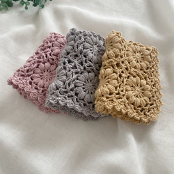 あたたかみのあるぷっくりしたお花のモチーフを編みつなげました